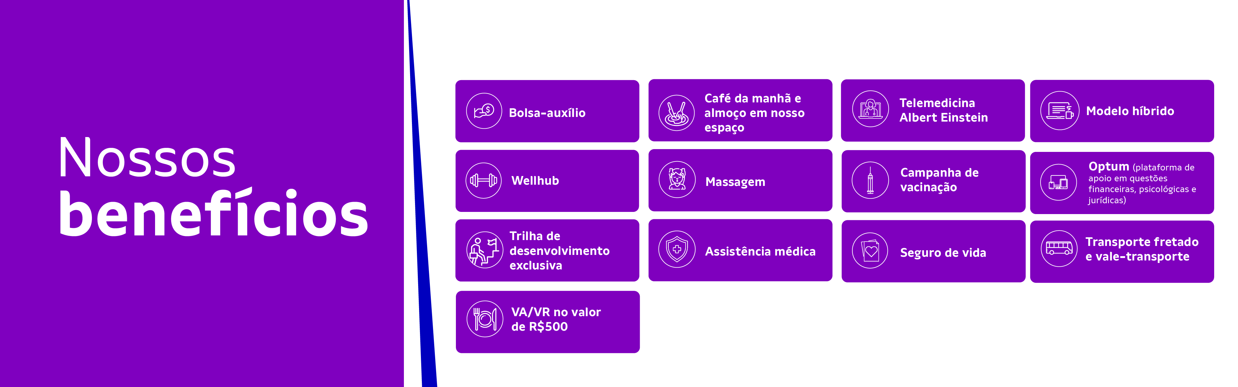 Acreditamos que a diversidade fortalece nosso time. Desde 2020, nosso processo seletivo prioriza vagas afirmativas para pessoas pretas ou pardas, PcDs e LGBTQIA+. Todas as pessoas são bem-vindas, e queremos construir um ambiente cada vez mais plural e representativo.
